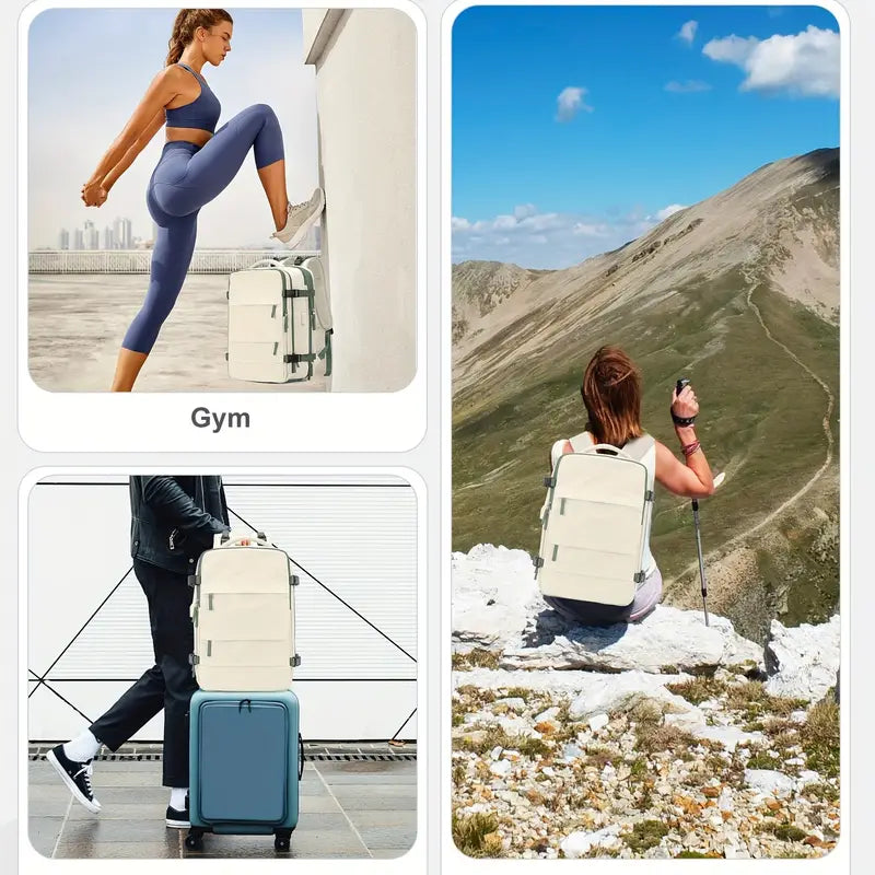 Ideal como mochila de cabina, puedes colocar un bolso de mano o poner los suministros que necesitas para tu viaje, y el tamaño es adecuado para guardarlo en los compartimentos superiores y debajo de los asientos de la cabina. Esta mochila está hecha de poliéster resistente al agua, buena permeabilidad al aire y disipación de calor con dos correas de hombro acolchadas, proporciona un refuerzo liviano y duradero.